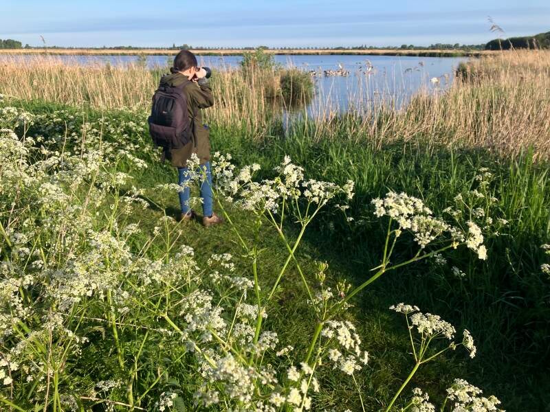 In the morning we meet in Amsterdam an head to the Nieuwkoopse Plassen. We arrive at sunrise with some mist over the fields. In the distance we hear a first Bluethroat whilst the sun comes up and we finish a quick coffee.